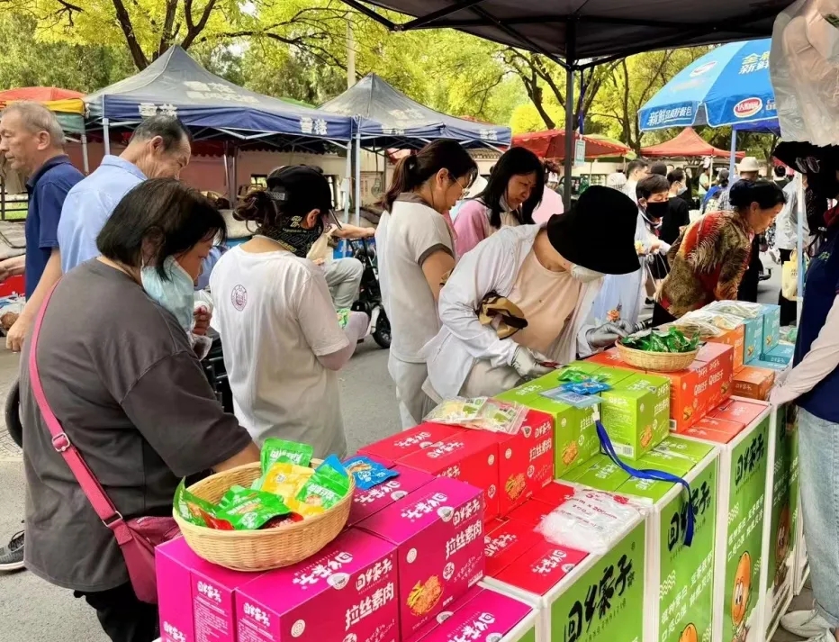 "Return to the village Stockade" Sales department deep in the morning market and other fireworks strong place, with delicious leisure snacks to pass good wishes, so that more people taste our characteristic leisure snacks.