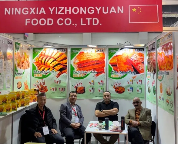 Ma Jinlong, chairman of Ningxia Yizhong Source Food Co., LTD., and Ma Zhihua, general manager of Ningxia Yizhong Food Co., LTD., went to Africa to participate in the exhibition with the products of "Return to the Village Stockade" and "Silk Road Stockade".
