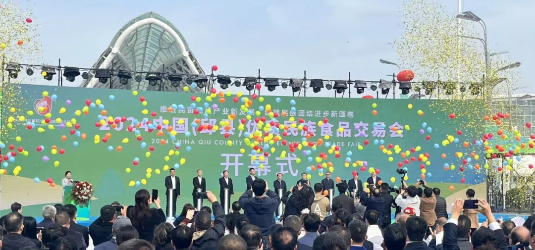 With the theme of "Promoting the new development of civil trade and civilian products Industry, drawing a new picture of national unity and progress", the 2024 China (Qiuxian) Quality Ethnic Food Fair was opened in the Kunpeng International Exhibition Center in Qiuxian County, Handan City on October 25. The fair lasts for 3 days, sponsored by China National Trade Promotion Association, Shaanxi Province Halal Food Chamber of Commerce, Handan Food Industry Association co-organized, Qiu County Food Industry Association hosted.