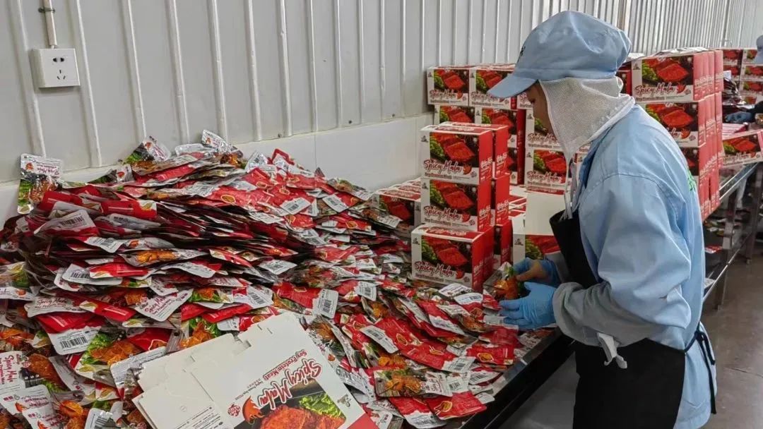 近日,在寧夏伊眾源食品有限公司的生產(chǎn)車間里,工人們忙碌著對Q勁豆干、拉絲素肉、烤面筋進行加工、分揀、分裝在為外貿(mào)出口定制的箱子中,等待海關(guān)檢查合格后出口馬來西亞。這是網(wǎng)紅產(chǎn)品烤面筋首次出口,也是公司單次出口量達到整柜。