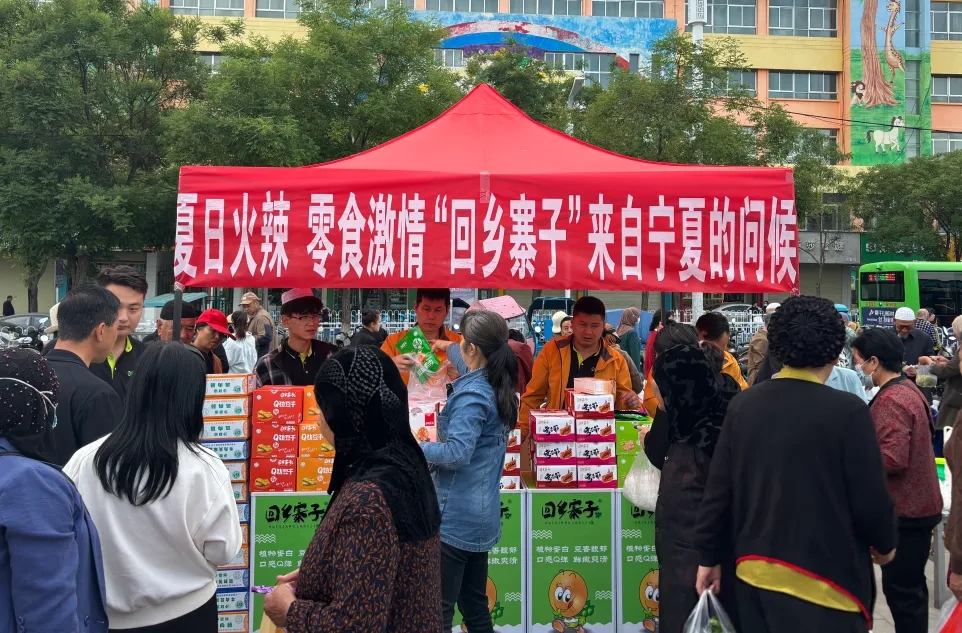 2024年6月7日,“回鄉(xiāng)寨子”銷售部一行九人,在董事長(zhǎng)馬金龍、銷售總監(jiān)王廣彬的帶領(lǐng)下,驅(qū)車近10小時(shí)前往甘肅臨夏,將來自寧夏的美味休閑零食與寧夏人民的美好祝愿一起送到這里。