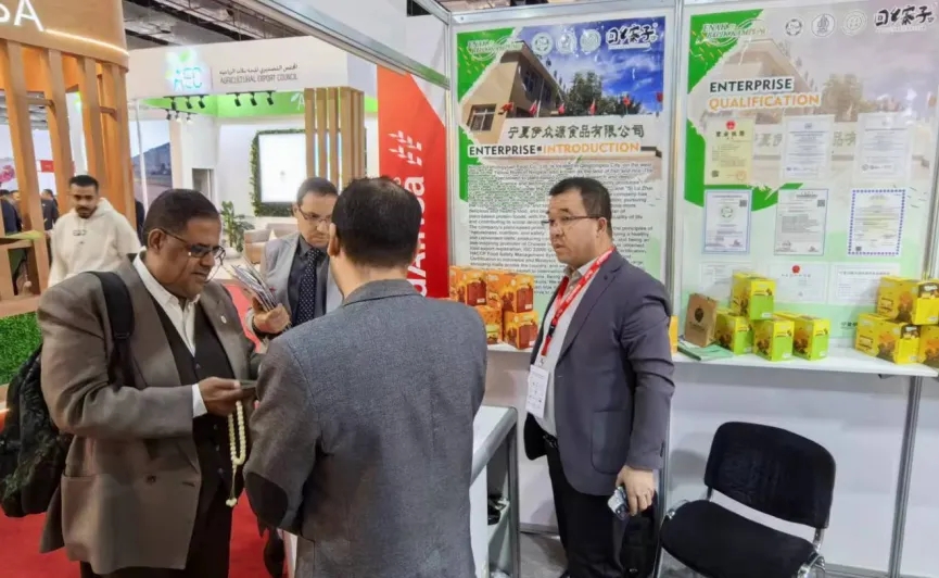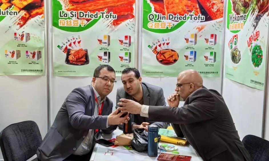寧夏伊眾源食品有限公司董事長馬金龍、總經(jīng)理馬志華攜帶“回鄉(xiāng)寨子”、“絲路寨子”系列產(chǎn)品遠(yuǎn)赴非洲參加此次展會。